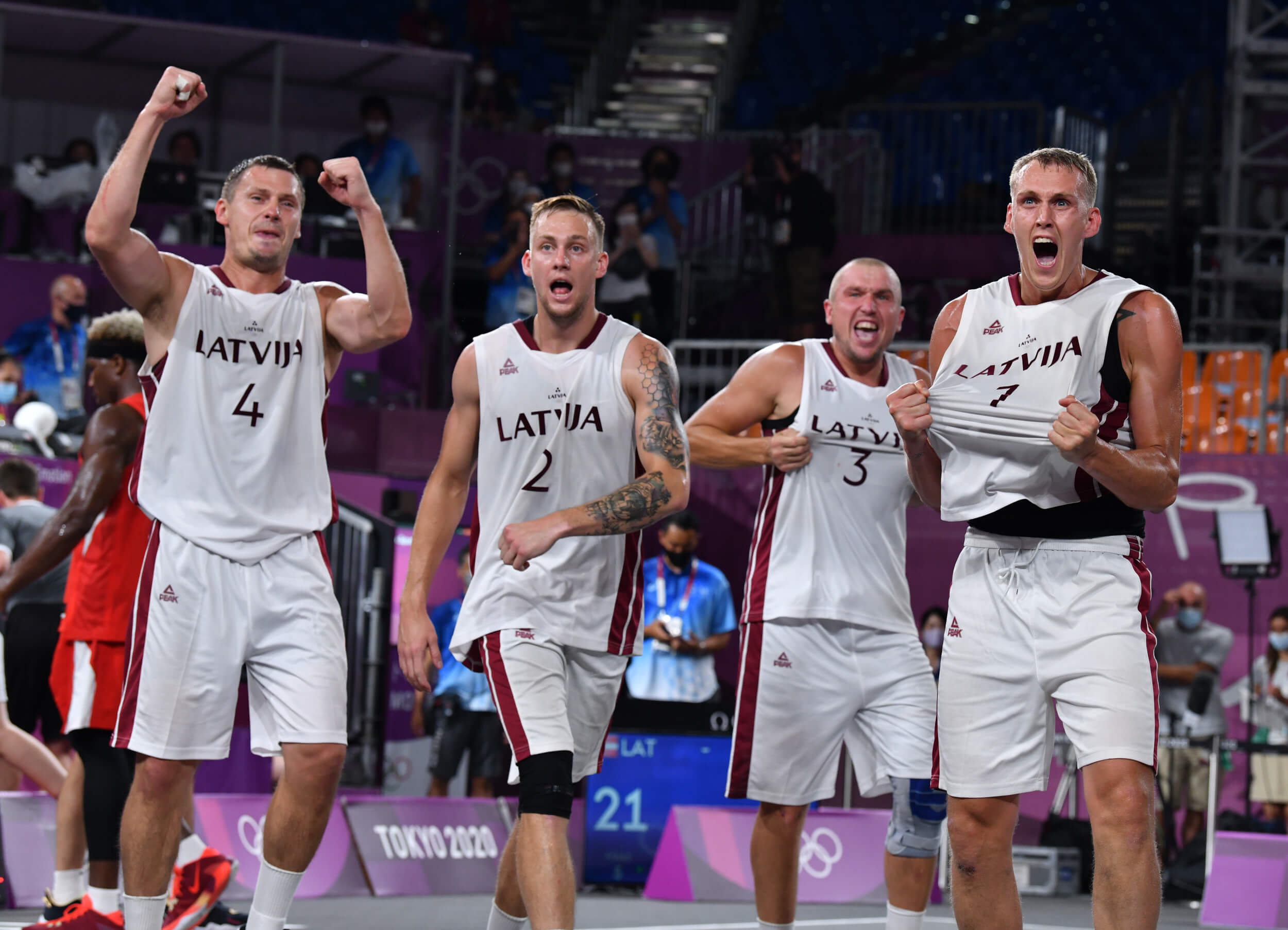 Latvijas 3x3 basketbola komanda ar Agni Čavaru, Nauri Miezi, Kārli Paulu Lasmani un Edgaru Krūmiņu sastāvā otrdien Tokijas olimpisko spēļu ceturtdaļfinālā uzvarēja Japānu un spēlēs pusfinālā.