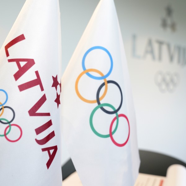 Svinīgi Latvijas Olimpiskā komitejas karogu pacēla Olimpieši Lauma Grīva un Uģis Lasmanis.